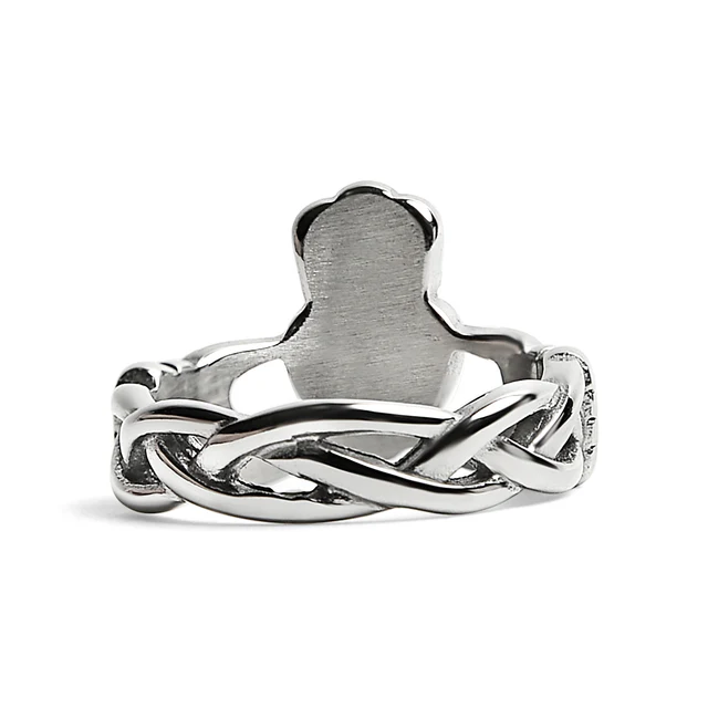 The classic design featuring a heart for love, a crown for loyalty, and hands for friendship is expertly crafted from durable and long-lasting stainless steel.