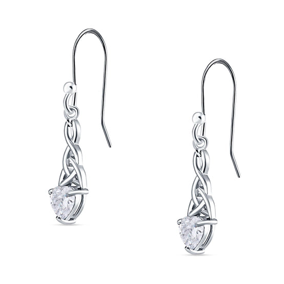 These earrings feature a captivating Celtic design, also known as the Triquetra, which symbolises unity and eternal love. With shimmering simulated cubic zirconia embedded in the design, they add a touch of elegance and mystique, making them a perfect accessory for any occasion.