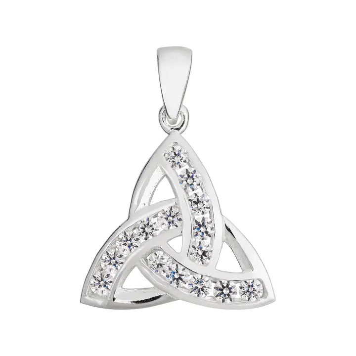 This exquisite Celtic Trinity Necklace features a traditional design, also known as the Triquetra, which symbolises love, unity, and eternity. The pendant is adorned with brilliant clear cubic zirconia polished to a lustrous finish that catches the light beautifully making it an elegant addition to any jewellery collection.