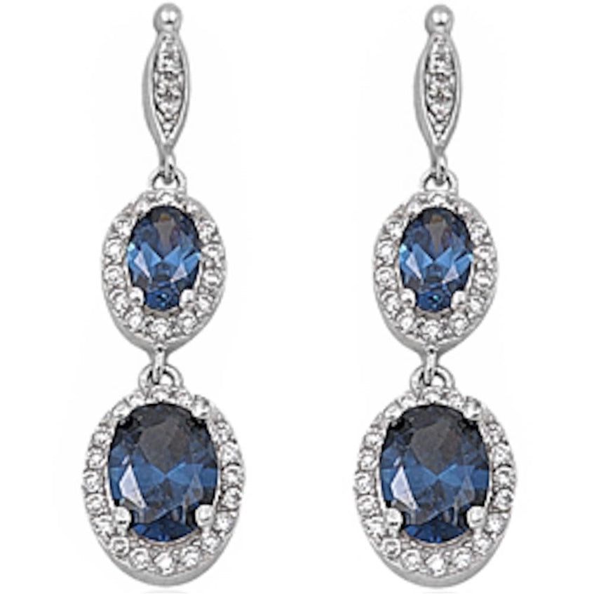 Make a breathtaking statement with these exquisite Sterling Silver Chandelier earrings, featuring a double drop of vibrant simulated Blue Sapphire stones. Each oval gem is meticulously framed by a dazzling halo of Cubic Zirconia, creating an unforgettable sparkle perfect for any grand occasion.