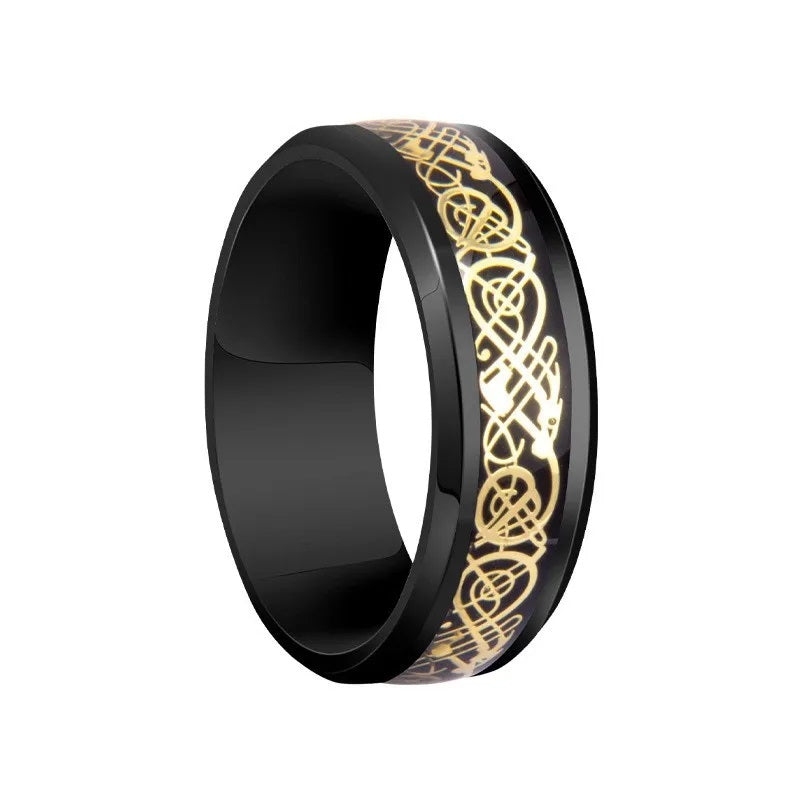Symbolising strength and eternal life. This bold band features the intricate Celtic Dragon Knot, representing the powerful serpent-beasts of ancient lore.
