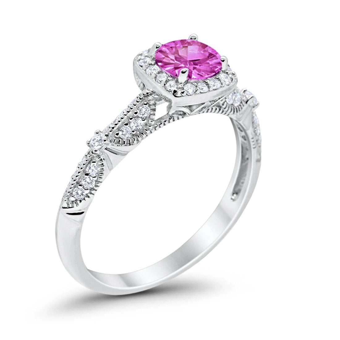 A brilliant Pink Cubic Zirconia as a vibrant centrepiece, beautifully framed by a dazzling square-shaped halo sparkling accents creates a modern classic.