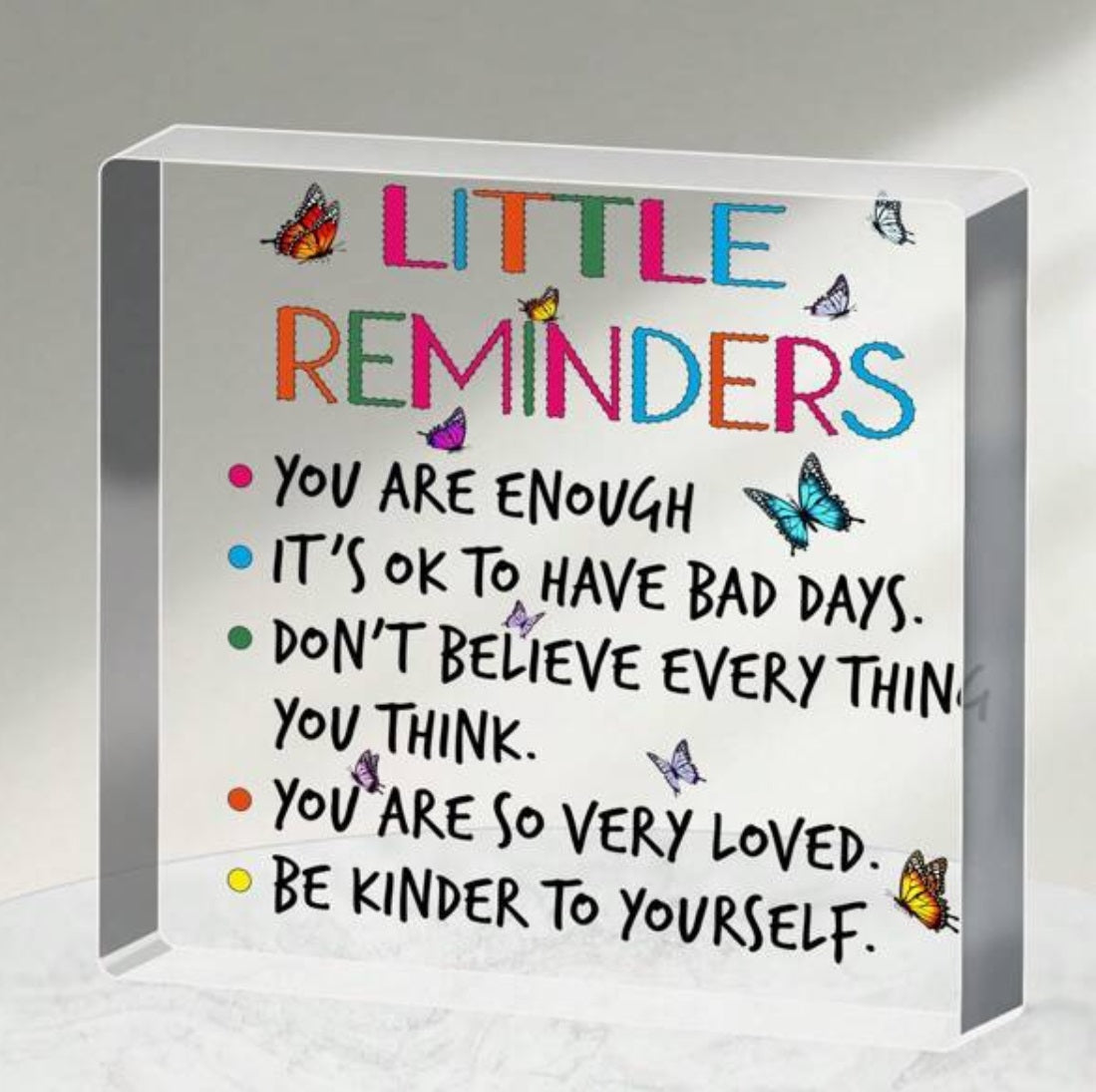 Capture your meaningful moments with our Little Reminders Inspirational Acrylic Plaque.