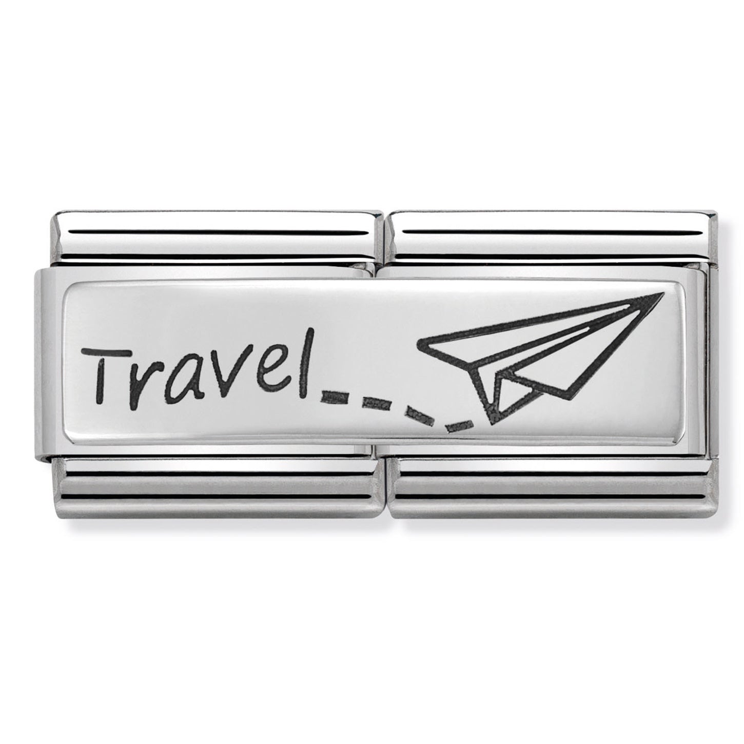Nomination Original Classic Double Link for Composable Bracelet with Travel and an aeroplane engraved in sterling silver & stainless steel.