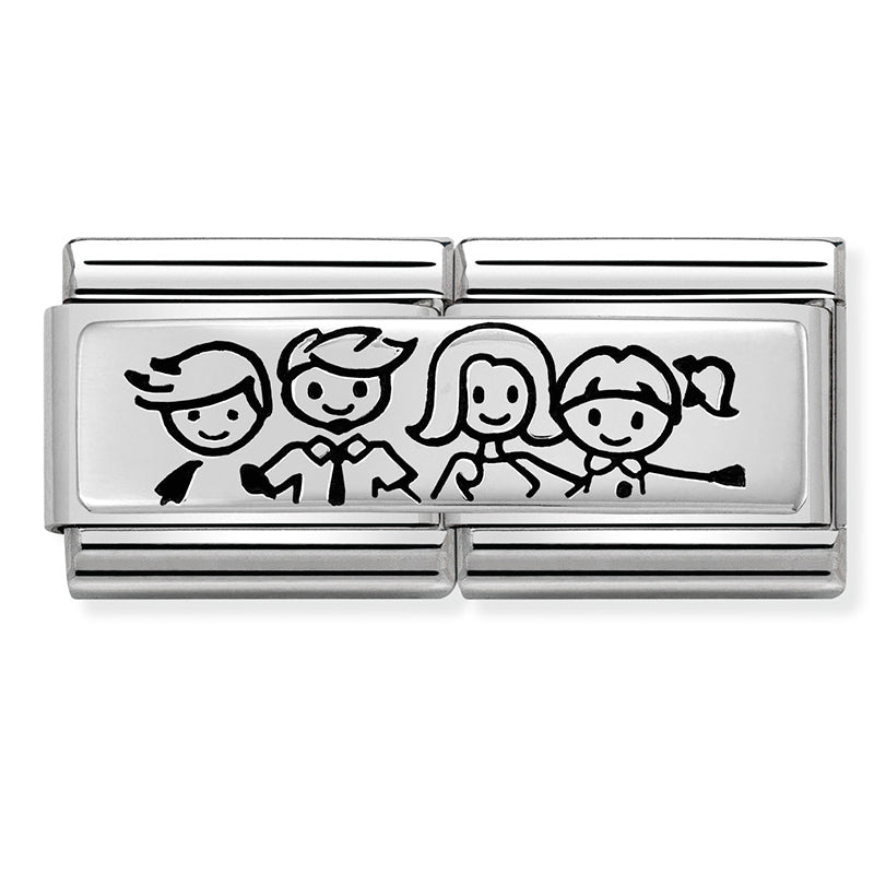 Nomination Original Classic Double Link for Composable Bracelet with oxidized Sterling Silver on stainless steel with Family with Son & Daughter symbol.
