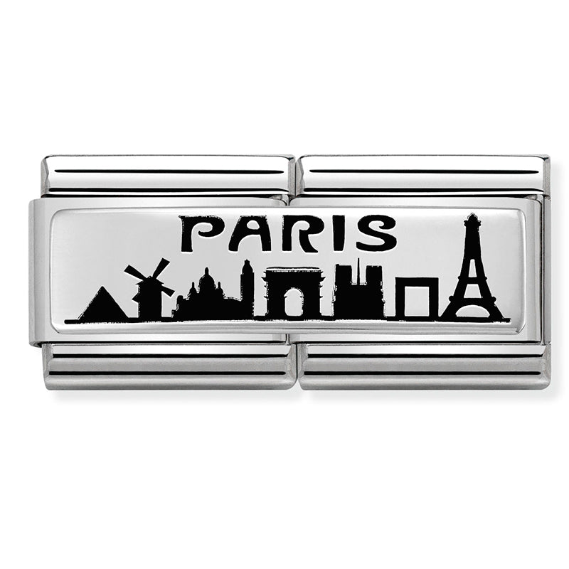Original Nomination Link for Composable Classic Bracelets in Stainless steel with Double Link in oxidised Sterling silver with PARIS skyline.