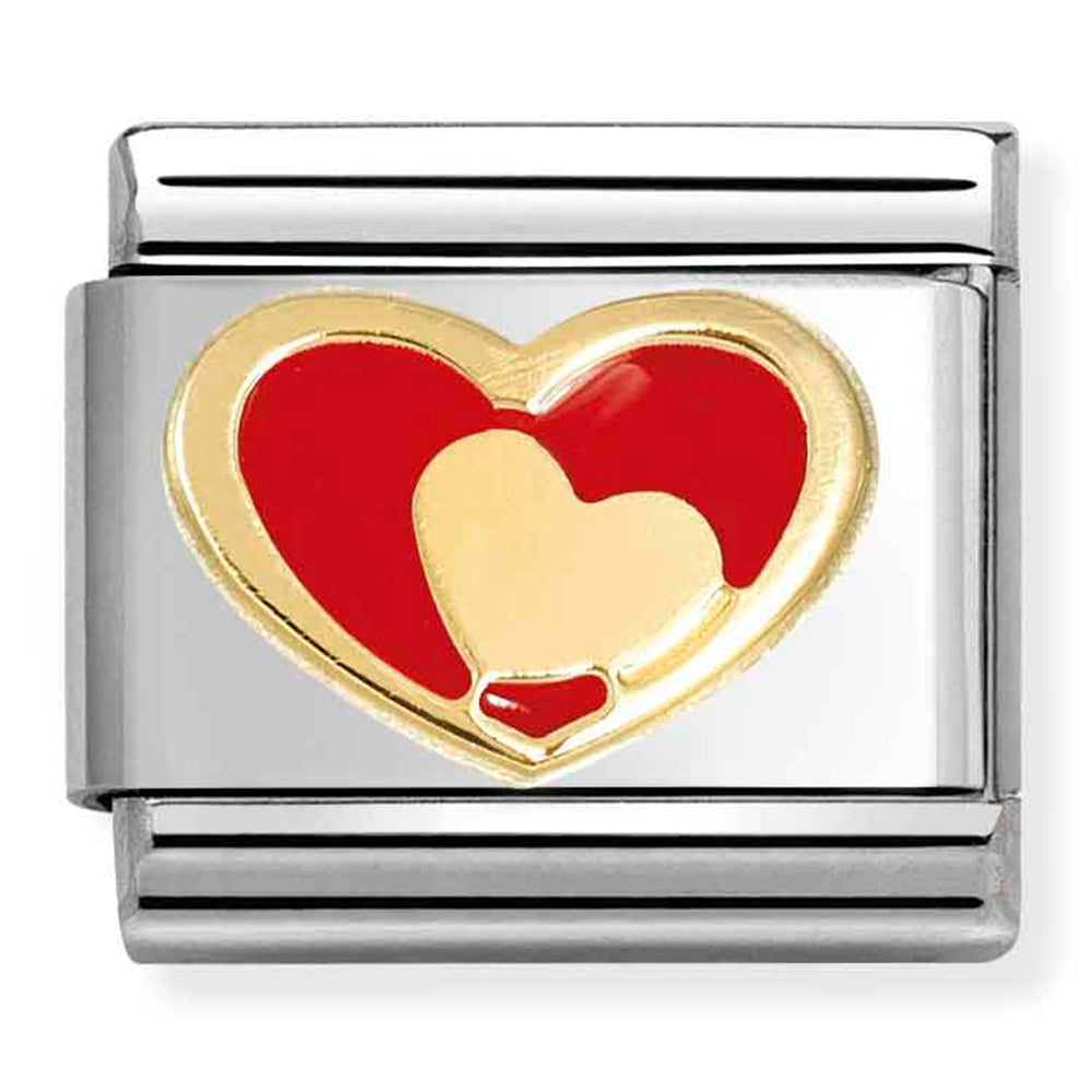 Original Composable Link for Nomination's Composable Classic Bracelet with Red heart and gold heart in 18K gold and enamel on stainless steel.