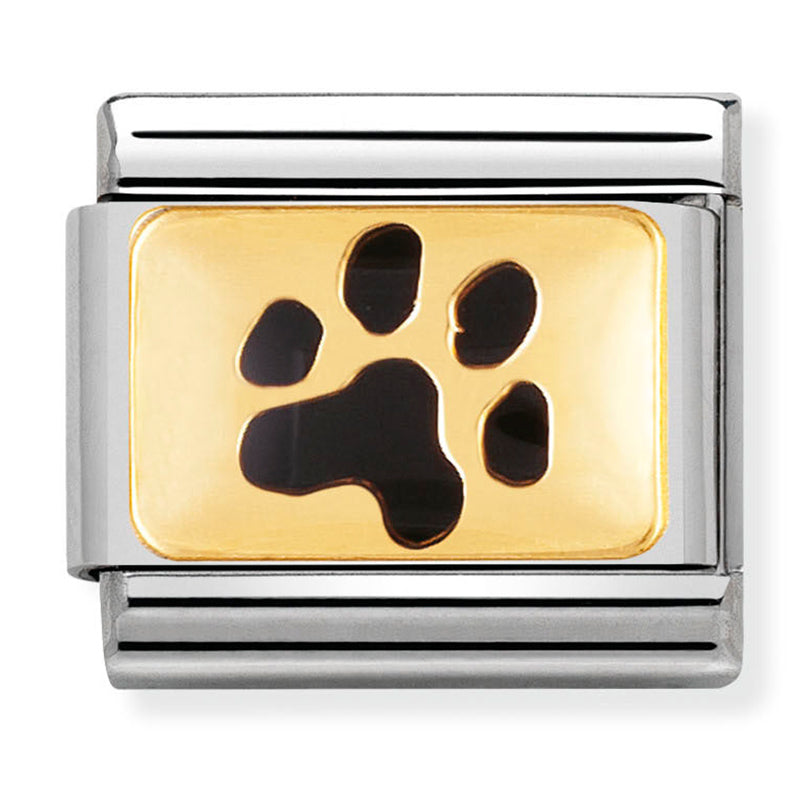 Original Composable Link for Nomination's Composable Classic Bracelet with Paw Print in 18K gold and enamel on stainless steel.
