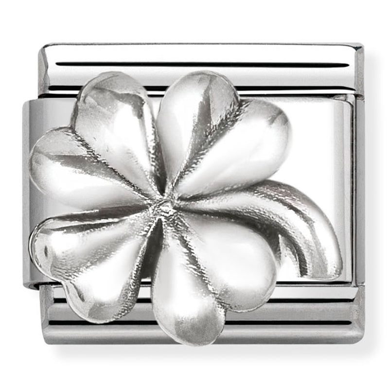Original Composable Link for Nomination's Composable Classic Bracelet with Four Leaf Clover symbol in oxidised sterling silver on stainless steel.