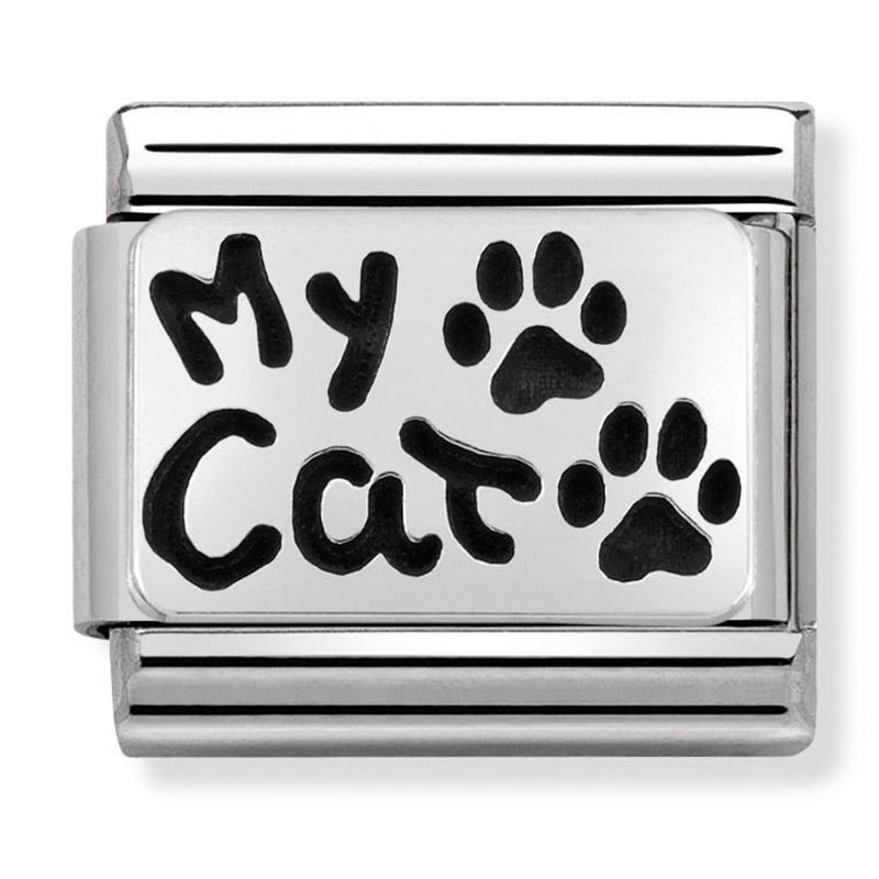 Original Composable Link for Nomination's Composable Classic Bracelet with My Cat symbol on 925 silver plate on stainless steel.