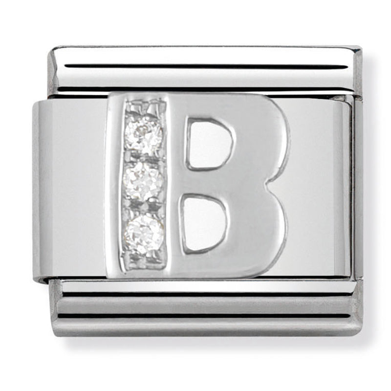 Nomination Original Classic Link for Composable Bracelet with Letter B symbol with Cubic Zirconia in sterling silver on stainless steel.