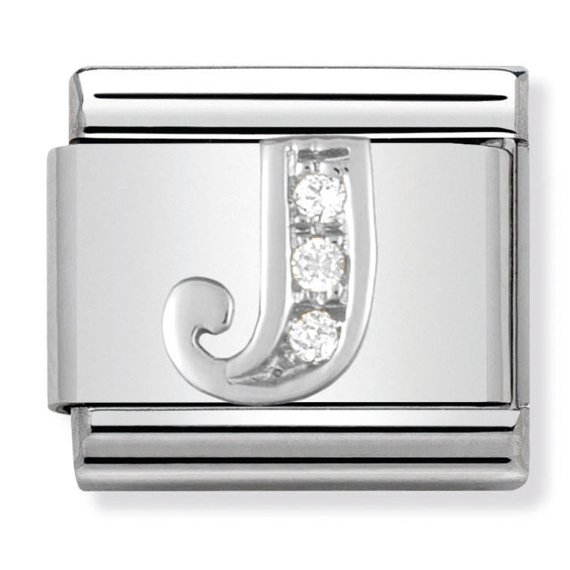 Nomination Original Classic Link for Composable Bracelet with Letter J symbol with Cubic Zirconia in sterling silver on stainless steel.
