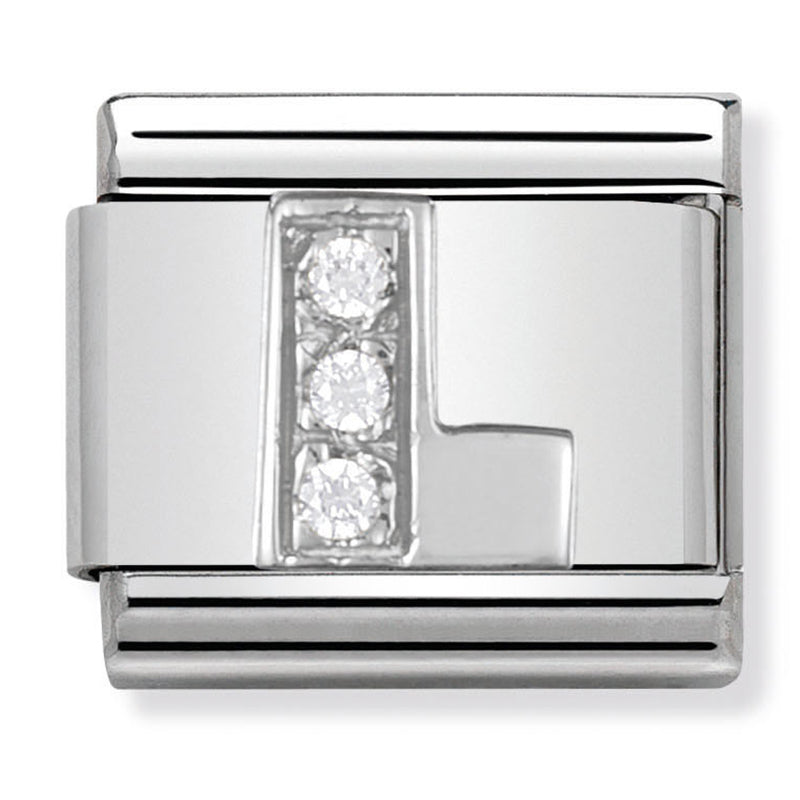 Nomination Original Classic Link for Composable Bracelet with Letter L symbol with Cubic Zirconia in sterling silver on stainless steel.