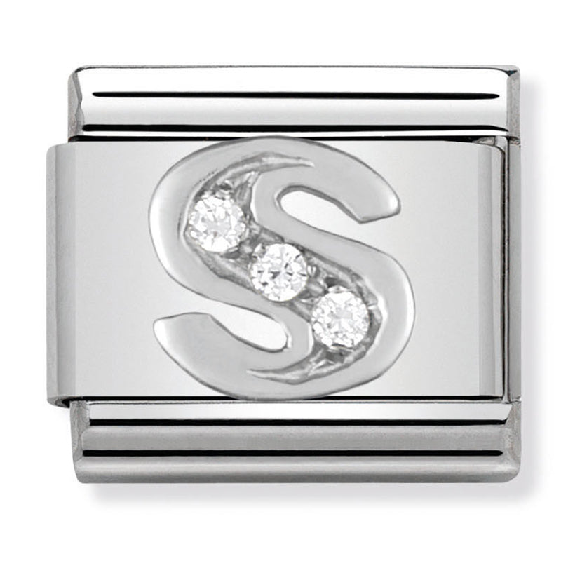 Nomination Original Classic Link for Composable Bracelet with Letter S symbol with Cubic Zirconia in sterling silver on stainless steel.
