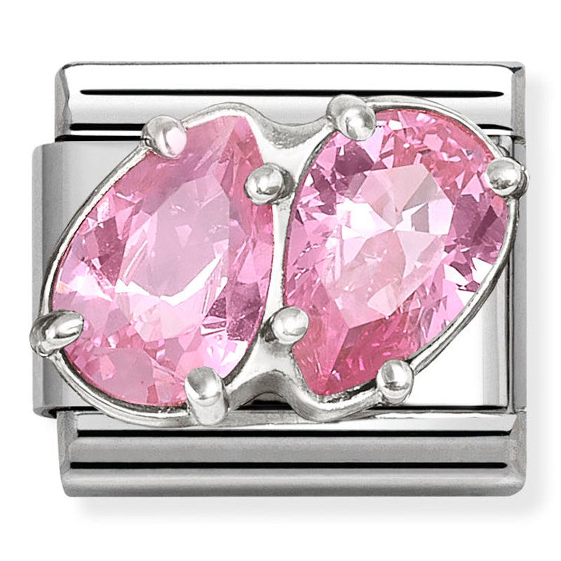 Original Composable Link for Nomination's Composable Classic Bracelet with a Raised Twin Drop Pink Cubic Zirconia in silver on stainless steel.
