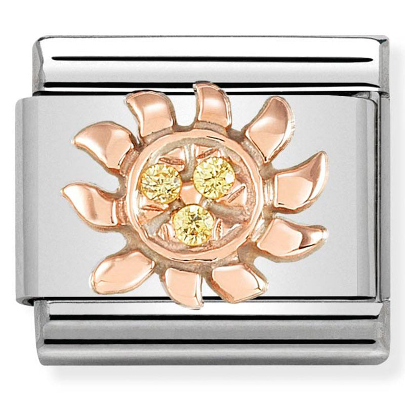 Original Composable Link for Nomination’s Composable Classic Bracelet with Sun in 9K rose gold and yellow cubic zirconias on stainless steel.