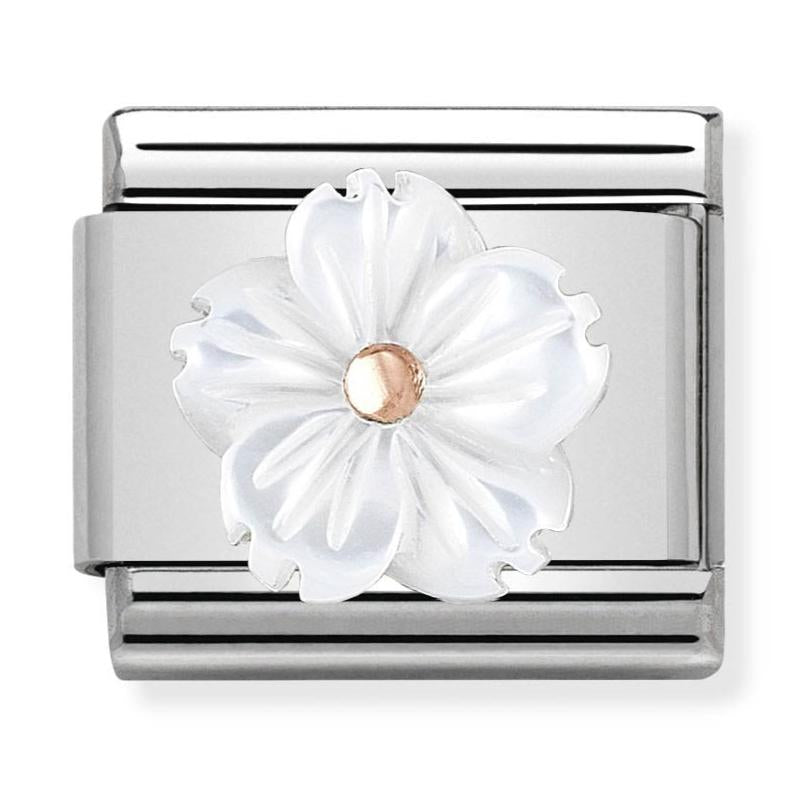 Original Composable Link for Nomination’s Composable Classic Bracelet with Flower in White Mother Pearl in 9K rose gold on stainless steel.