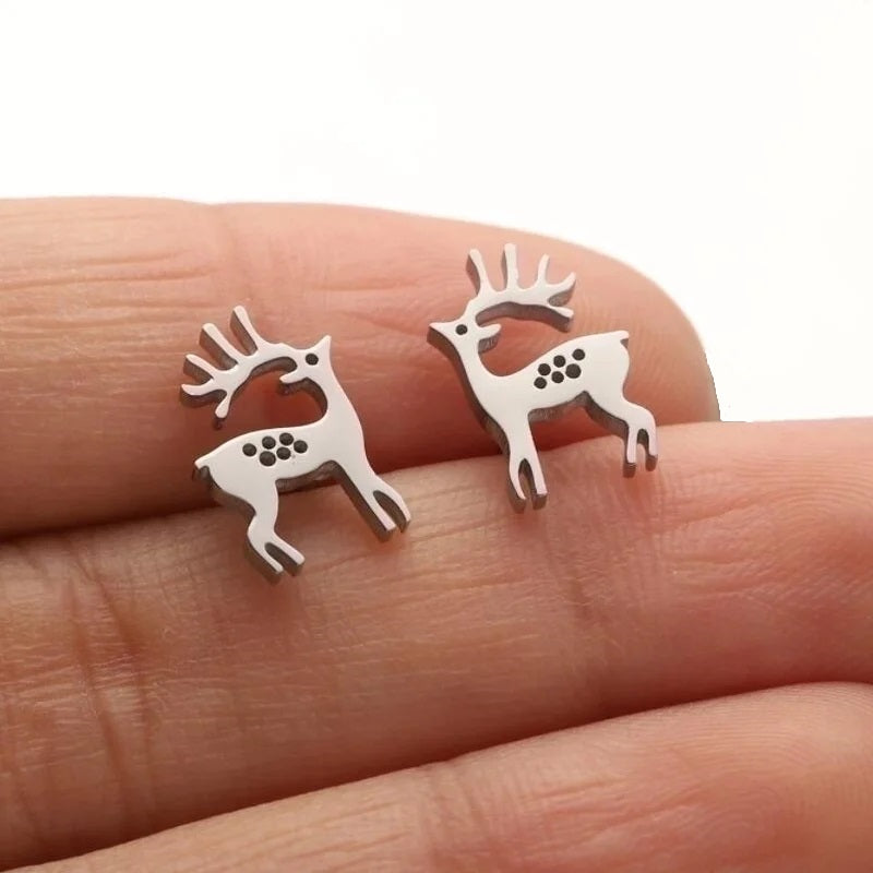 These charming silver stainless steel earrings feature a detailed reindeer design with antlers, making them a perfect accessory for Christmas. While ideal for festive holiday events, the simple, elegant design ensures they can be worn year-round.