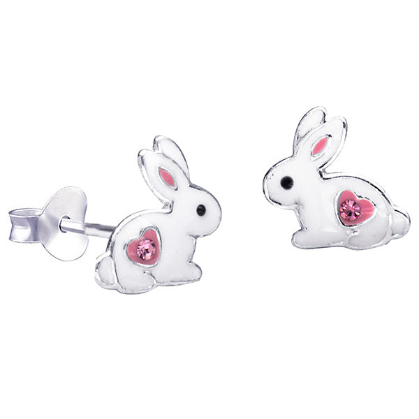 Delight your little one with these charming Sterling Silver White Rabbit Stud Earrings. Each adorable bunny is brought to life with bright white and pink enamel, featuring a sweet pink heart that holds a tiny, dazzling crystal for a special touch of sparkle. These tiny treasures are sized perfectly for children and are naturally hypoallergenic, ensuring safe and comfortable wear for sensitive ears. These cute rabbits symbolise luck, innocence, and new adventures, making them a truly meaningful gift.