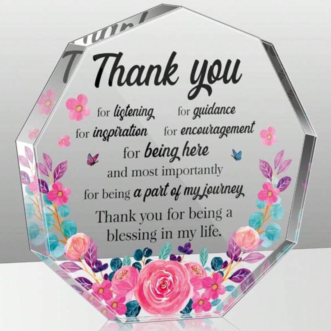 Embrace the unique design of our Acrylic Hexagon Thank You Plaque, crafted from durable and easy-to-clean translucent acrylic material.